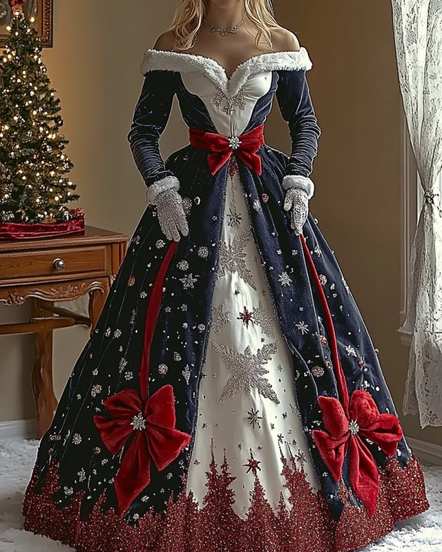 Women's Christmas themed embroidered elegant dress 3255