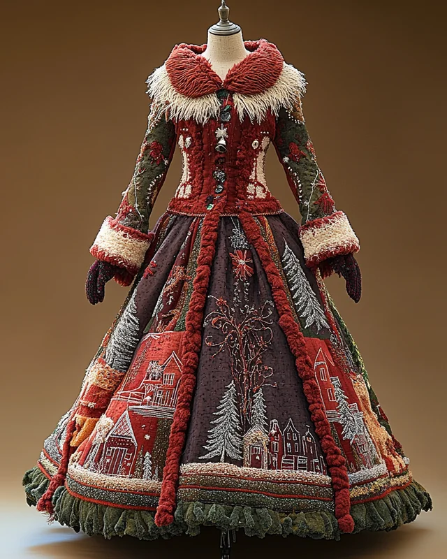 Women's Christmas themed embroidered contrasting color stitching knitted dress 9582